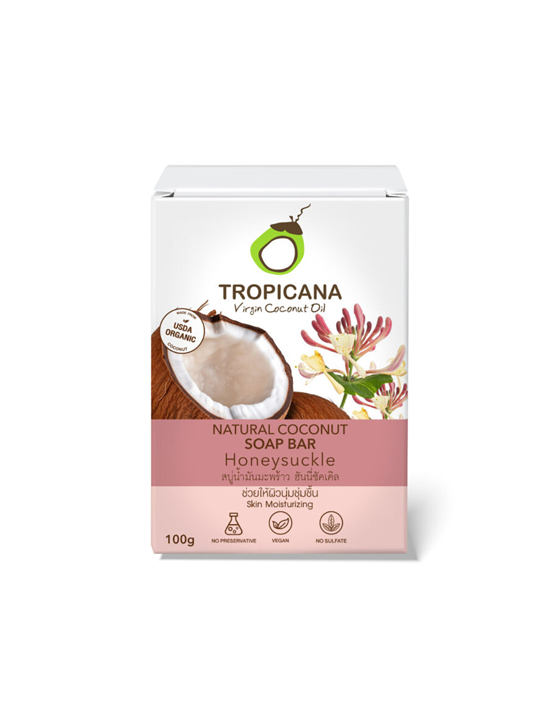 Tropicana Coconut Oil Soap Bar Honeysuckle crafted with organic cold-pressed virgin coconut oil, this soap offers a gentle yet effective cleansing experience.