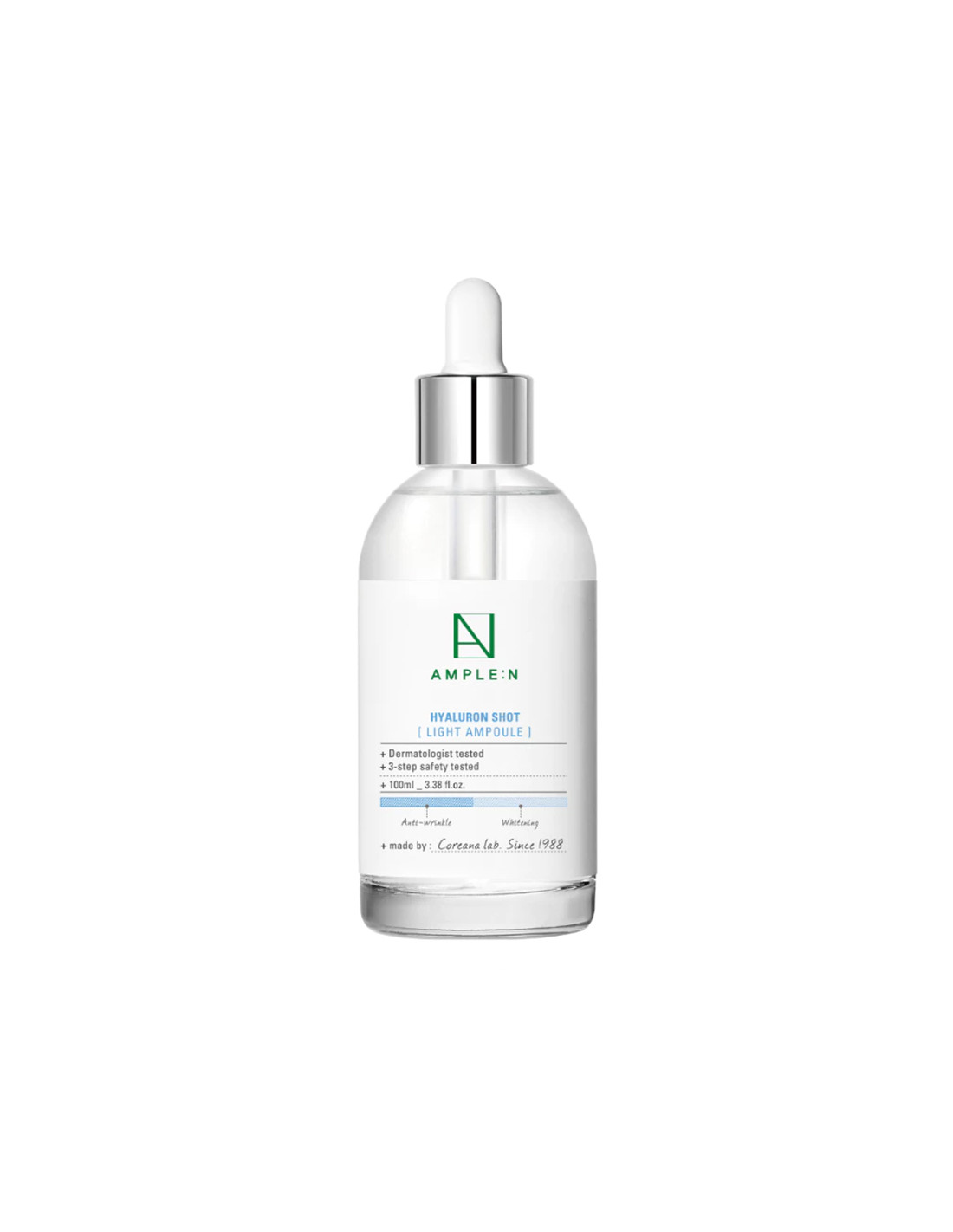 Experience intense hydration with AMPLE:N Hyaluron Shot Ampoule 100 ml, a lightweight moisturizing serum designed to restore smoothness and radiance to your skin. Formulated with multi-molecular hyaluronic acid, it deeply replenishes moisture, supports skin elasticity, and leaves the complexion soft, plump, and dewy. Ideal for daily use on dry, dull, or dehydrated skin. Absorbs quickly without stickiness — perfect for layering under makeup or cream.