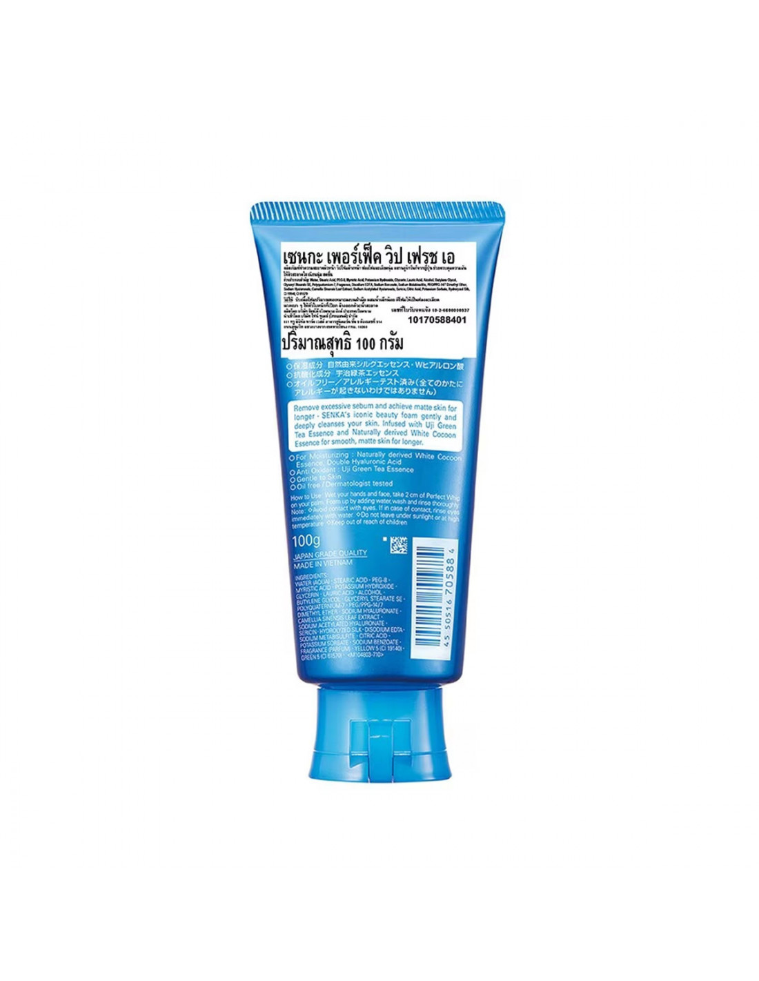 Senka Perfect Whip Fresh Foam is a rich facial cleanser with Uji Green Tea Essence and Double Hyaluronic Acid. It removes excess oil and impurities while helping skin feel fresh, smooth, and comfortably matte. The iconic dense micro-foam gently cleanses without over-drying. Oil-free and dermatologist tested. Suitable for daily use, especially for combination to oily skin.