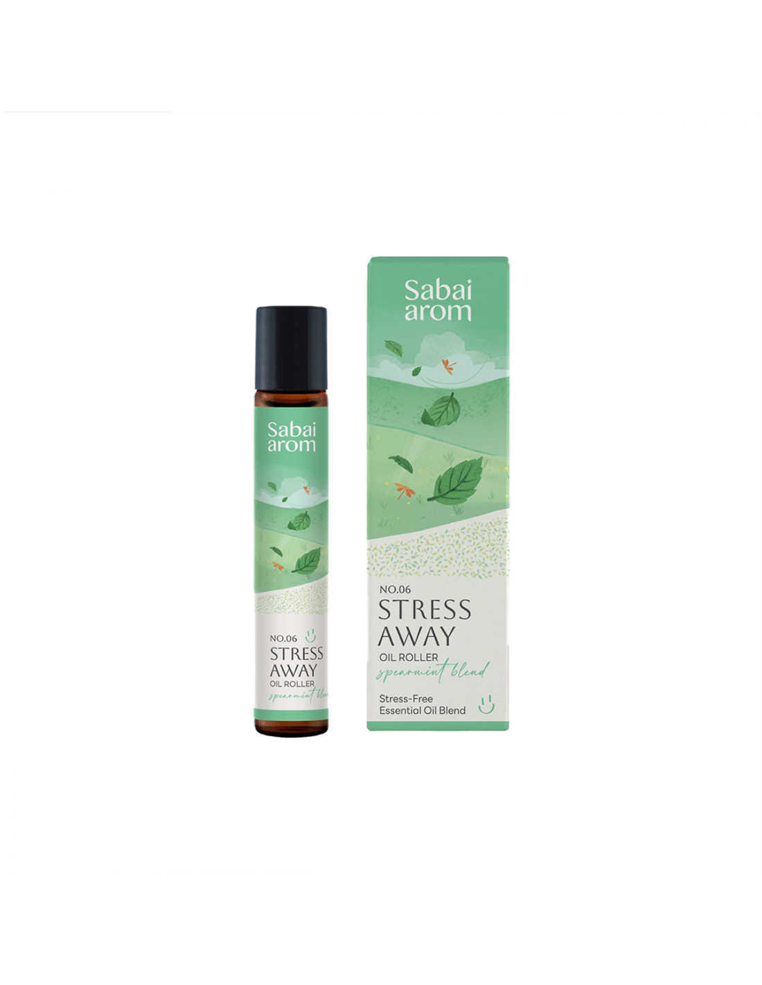Sabai-arom NO.06 Spot Roller is a travel-size essential oil roll-on featuring Lavender, Ylang Ylang, Chamomile, Eucalyptus, Bergamot, Orange, and mint notes. Designed for convenient pulse-point application, this portable aromatherapy blend offers a fresh floral-herbal citrus aroma ideal for daily use at work or on the go.